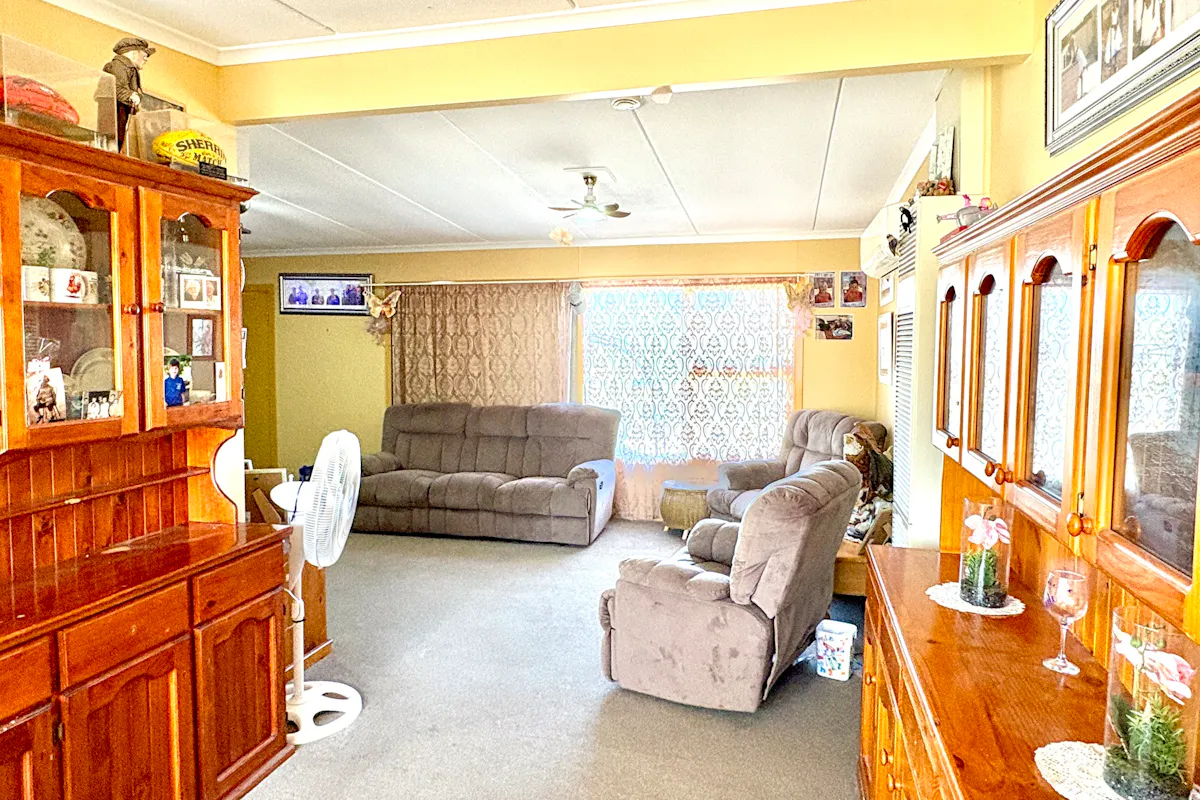 Inside, the open-plan living area features an L-shaped lounge and dining space designed for relaxed everyday living. Comfort is assured with a split system air conditioner, a wall heater (not currently used by the vendor), and three modern remote-controlled light and ceiling fans that add both style and functionality.